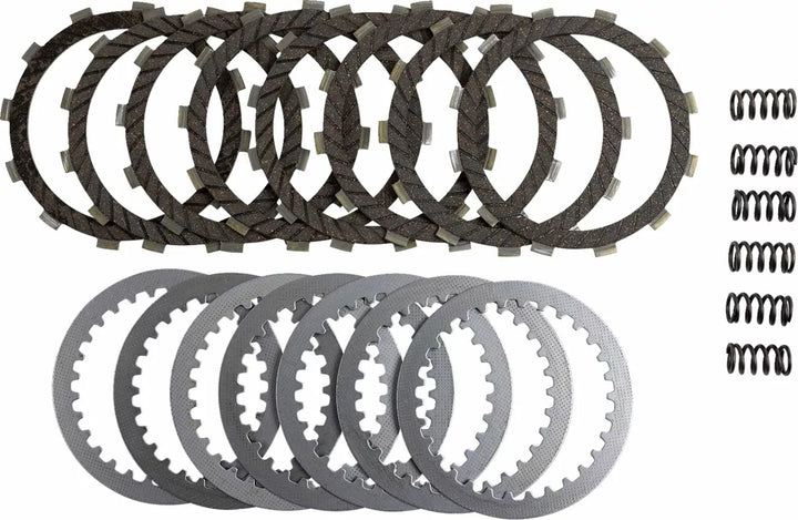 Anti-Swell, Alloy-Impregnated Heavy-Duty Cork-based Facings for Smooth Clutch Take-up, Allows Modulation, Unlike Paper Clutches That Tend to Snatch, Complete Engine Set of Friction Plates, HD Spring and Steel Movael Separates Pandes Pandes PREVES PREVES Height, Built with Swagged Aluminum Carriers That Spread The Load On The Clutch Basket and Prevent Clutch Basket "Dogging", 10-15% Uprated Heavy Duty Clutch Springs