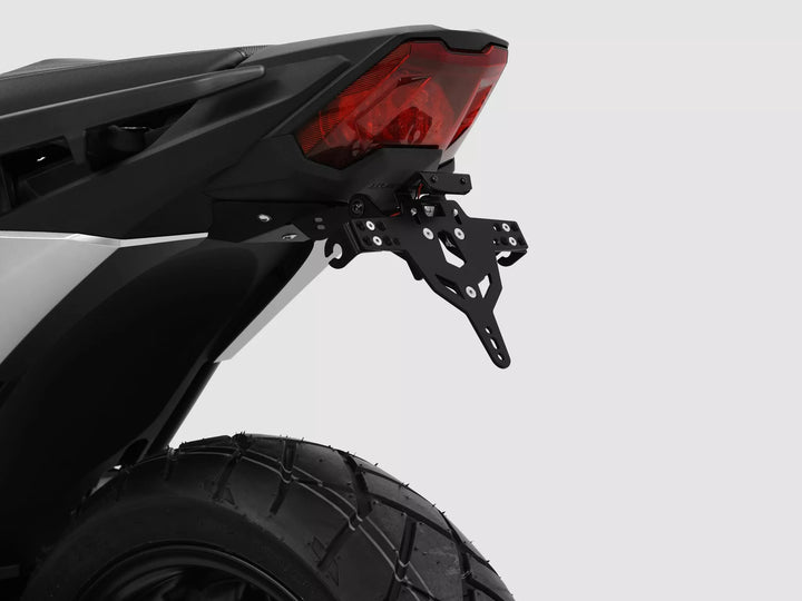 The License Plate Holder is Extremely Durable and Weather Proof., Black Powder Coated. , The License Plate Holder Can Be Used For Any Kind of License Plate (175mm Width)., No Modification of Fairing Required., Stepless Adjustment of Rake Angle., Indicator Support Adjustable in 3 Positions. Plate., Special Indicator Light Mounts (Sold Separately) Required for Stock Indicator Lights., Kit Includes: 1 License Plate Holder Incl. Mounting Kit., LED License Plate Light "e Approved" Incl. Support. Of: Switzerland, Poland and Ireland.