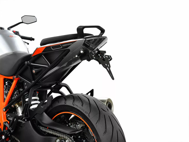 The License Plate Holder is Extremely Durable and Weather Proof., Black Powder Coated. , The License Plate Holder Can Be Used For Any Kind of License Plate (175mm Width)., No Modification of Fairing Required., Stepless Adjustment of Rake Angle., Indicator Support Adjustable in 3 Positions. Plate., Special Indicator Light Mounts (Sold Separately) Required for Stock Indicator Lights., Kit Includes: 1 License Plate Holder Incl. Mounting Kit., LED License Plate Light "E Approsved" Incl. Support., Back Light With Support. Of: Germany, Slovenia, Croatia & UK.