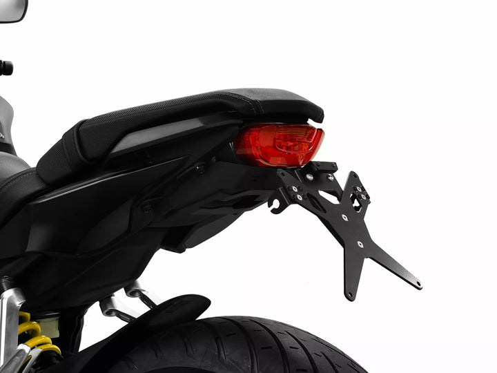 The License Plate Holder is Extremely Durable and Weather Proof., Black Powder Coated. , The License Plate Holder Can Be Used For Any Kind of License Plate (175mm Width)., No Modification of Fairing Required., Stepless Adjustment of Rake Angle., Indicator Support Adjustable in 3 Positions. Plate., Special Indicator Light Mounts (Sold Separately) Required for Stock Indicator Lights., Kit Includes: 1 License Plate Holder Incl. Mounting Kit., LED License Plate Light "e Approved" Incl. Support., Back Light With Support. Disclaimer: Important: For the use of this license Plate Holder with the oem Turn Signals of Ducati Models (2015 - Present) A Special Holder is Needed (Zieger Turn Signal Adapter and Duc. Parts Europe Part Number: 20301971. Vendor Number: 10005790).