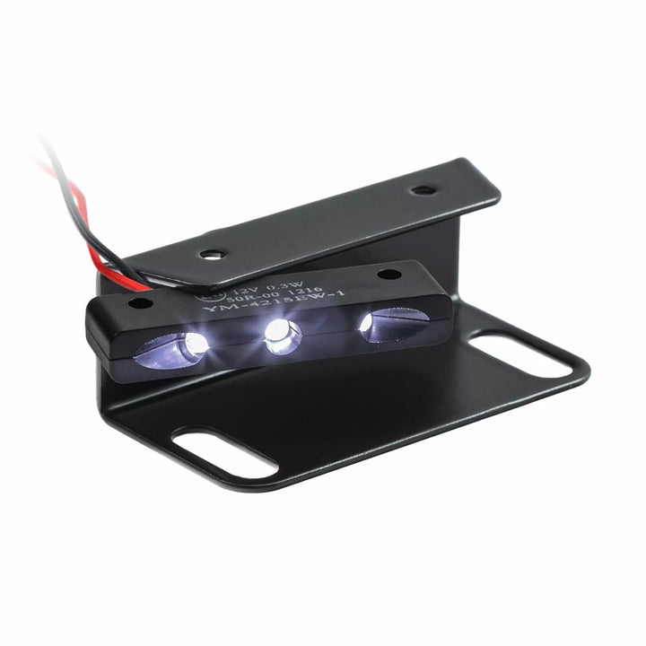 The License Plate Holder is Extremely Durable and Weather Proof., Black Powder Coated. , The License Plate Holder Can Be Used For Any Kind of License Plate (175mm Width)., No Modification of Fairing Required., Stepless Adjustment of Rake Angle., Indicator Support Adjustable in 3 Positions. Plate., Special Indicator Light Mounts (Sold Separately) Required for Stock Indicator Lights., Kit Includes: 1 License Plate Holder Incl. Mounting Kit., LED License Plate Light "e Approved" Incl. Support., Back Light With Support. Disclaimer: Important: For the use of this license Plate Holder with the oem Turn Signals of Ducati Models (2015 - Present) A Special Holder is Needed (Zieger Turn Signal Adapter and Duc. Parts Europe Part Number: 20301971. Vendor Number: 10005790).