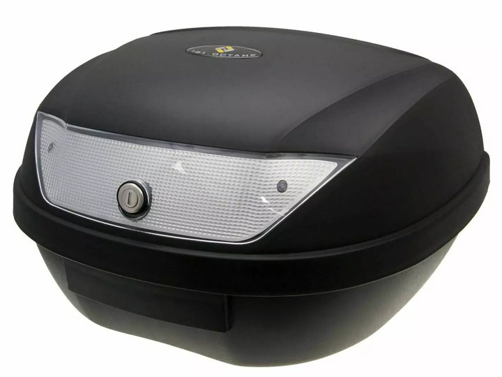 Uniwersalne górne pudełko, czarny plastik, z zamkiem. Dostarczone z 2 klawiszami i dopasowaniem bazy, łatwy do zabezpieczenia pojazdu i szybkie zwolnienie.