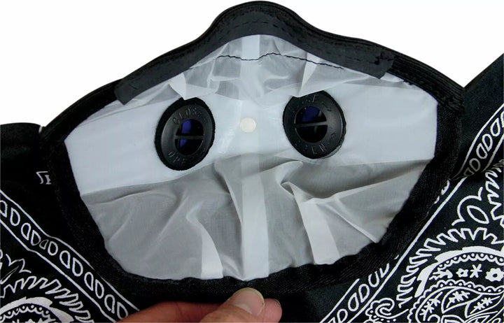 Filtr blokuje do 99,5% cząstek pyłu, dwa jednokierunkowe zawory wydechowe TEK regulują ciepło, CO², pary wodne i zmniejsza zamgawanie soczewki, oddychającą, wilgoć, do mycia (suche powietrze), wielokrotne użycie), ponowne użycie)