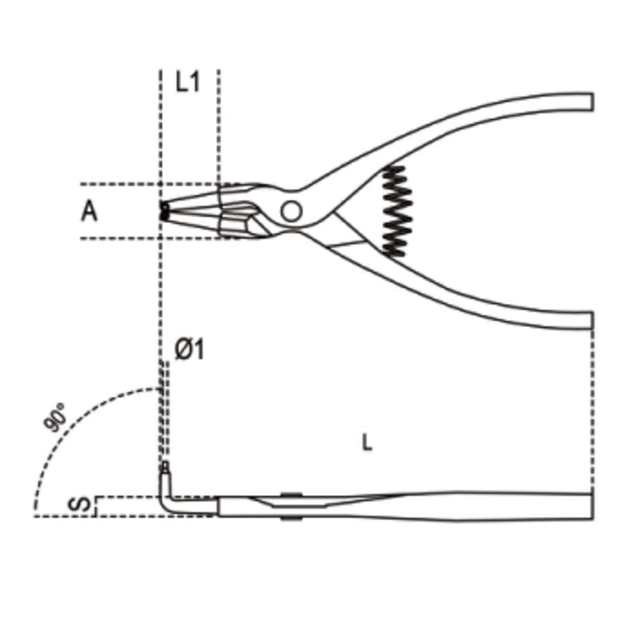 L: 175 mmfor Circlips: 19-60mmmø1: -a: 21 mm: 10 mml1: 23 mm Waga: 160G Pliers_Type: Zewnętrzne Range_Of_use: 19-60 Kształt: pod kątem