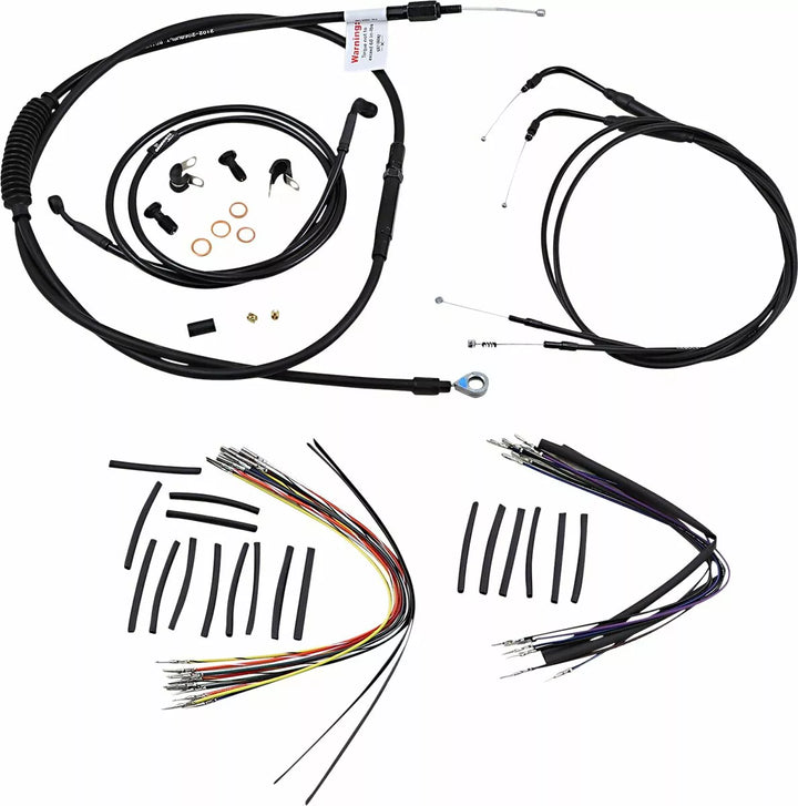Kompletny zestaw instalacyjny dla krzepkowych wieszaków małpy, zestaw zawiera rozszerzoną linię hamulcową (o ile nie zaznaczono), rozszerzoną linię kabla/sprzęgła, przedłużone kable przepustnicy/bezczynności w razie potrzeby i wszystkie wymagane okablowanie, kit, kit oparty na użyciu 2 „Rise, w tym, felemudd, zewnętrzne warkocze.
