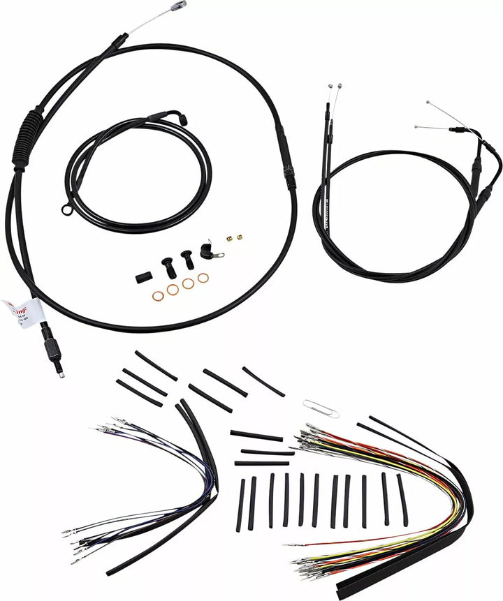Kompletny zestaw instalacyjny dla krzepkowych wieszaków małpy, zestaw zawiera rozszerzoną linię hamulcową (o ile nie zaznaczono), rozszerzoną linię kabla/sprzęgła, przedłużone kable przepustnicy/bezczynności w razie potrzeby i wszystkie wymagane okablowanie, kit, kit oparty na użyciu 2 „Rise, w tym, felemudd, zewnętrzne warkocze.