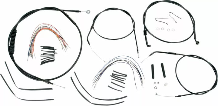 Kompletny zestaw instalacyjny dla krzepkowych wieszaków małpy, zestaw zawiera rozszerzoną linię hamulcową (o ile nie zaznaczono), rozszerzoną linię kabla/sprzęgła, przedłużone kable przepustnicy/bezczynności w razie potrzeby i wszystkie wymagane okablowanie, kit, kit oparty na użyciu 2 „Rise, w tym, felemudd, zewnętrzne warkocze.