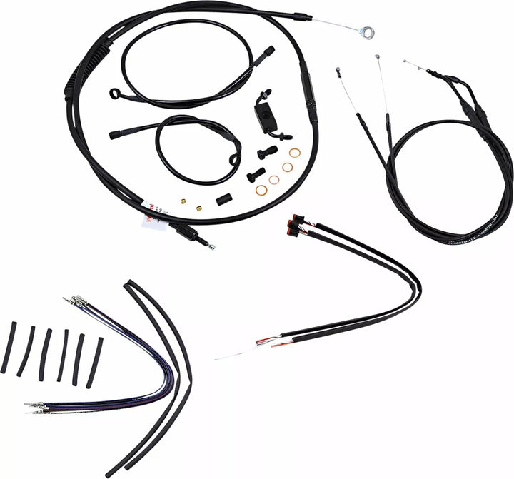 Kompletny zestaw instalacyjny dla krzepkowych wieszaków małpy, zestaw zawiera rozszerzoną linię hamulcową (o ile nie zaznaczono), rozszerzoną linię kabla/sprzęgła, przedłużone kable przepustnicy/bezczynności w razie potrzeby i wszystkie wymagane okablowanie, kit, kit oparty na użyciu 2 „Rise, w tym, felemudd, zewnętrzne warkocze.