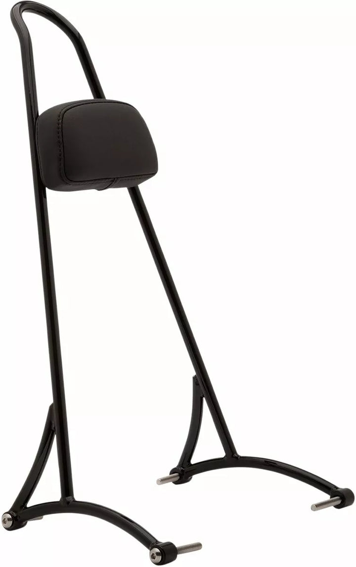 Klasyczna, jednoczęściowa sissy bar, solidna, stalowa konstrukcja, mocowanie na zewnątrz szyn błonnika w celu łatwej instalacji i usuwania, zawiera kompaktową czarną parę winylową (mierzy 6 cali x 3-1/4 "h)