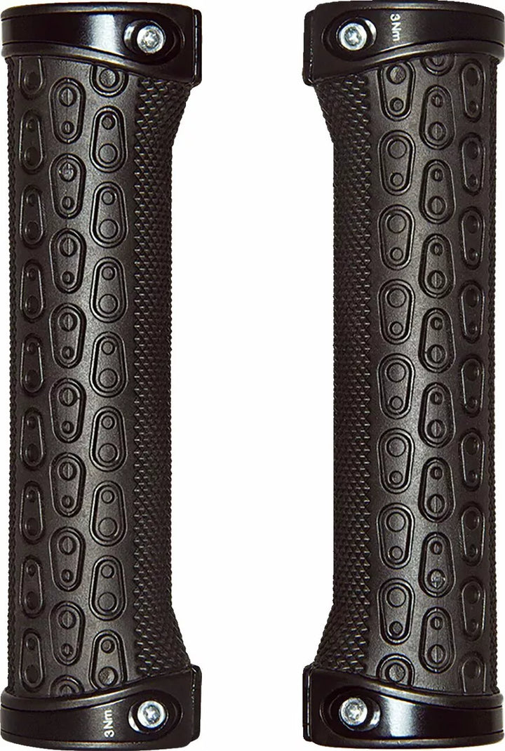 Dual Clamp Design dla wszystkich górskich jazdy, mają nowy wzór chwytania, który jest wyjątkowo trwały, przy 95G, chwyty blokady są lekką i trwałą opcją dla całej jazdy górskiej