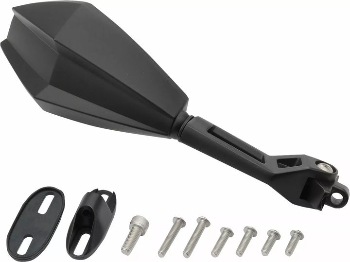 Zatwierdzony ECE., Materiał lustrzany głowica: ABS, Materiał Lustro Ramię: aluminium, jedno czarne lustro po prawej/lewej stronie do zamontowania na uchwycie/owiewce
