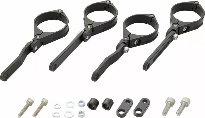 Regulowany wspornik reflektora z podwójną osią wykonany z aluminium obrabianego CNC w kolorze czarnym, zacisk widelca można regulować w pionie, umożliwiając regulację pozycji reflektora w zestawie mocowania wskaźnika M8 z przodu, jest włączony do dyskretnej instalacji