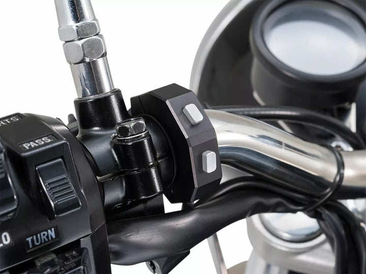 Kierownik 22.2 / 25,4 mm, okablowanie na zewnątrz lub wewnątrz kierownicy możliwe, Max. Obecna pojemność 50 mA, szerokość 12 mm