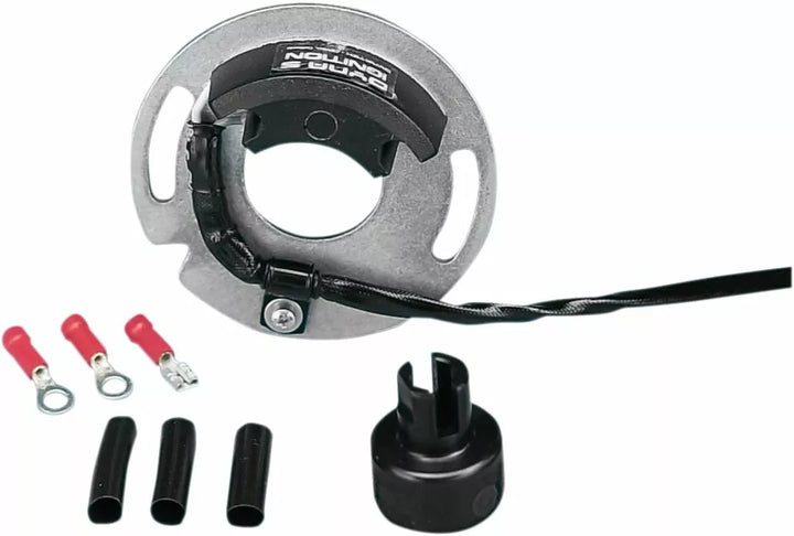 Samodzielny układ zapłonowy ma czujniki magnetyczne efektu hallu, które nie są wrażliwe na zmiany RPM lub wpływają na brud i olej, poprawia ogólną wydajność, zmieniając czas o mniej niż trzy trzy stopnie, rozszerza żywotność wtyczki i eliminuje użycie i eliminuje użycie i eliminuje użycie i eliminuje. Używany i popierany przez wielu kierowców mistrzostw, wykonany w USA, operacja z systemem zapłonowym Dyny wymaga użycia cewki 5 omów wtórnych, takich jak część # DC7-1 lub cewka punktów magazynowych z wczesnych łopat. Nie zalecane do działania z cewkami OEM.