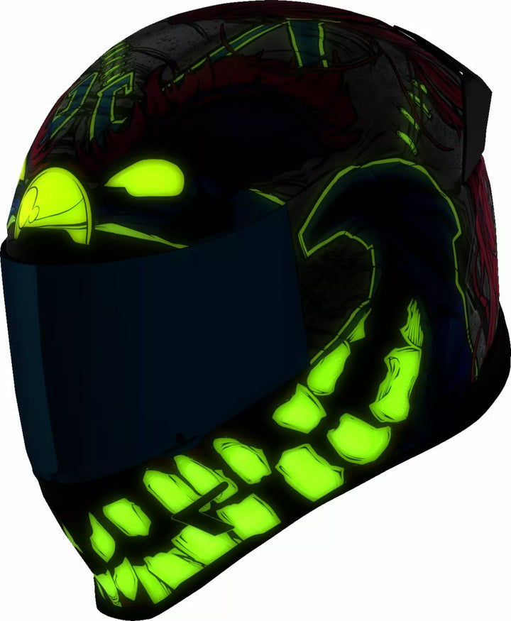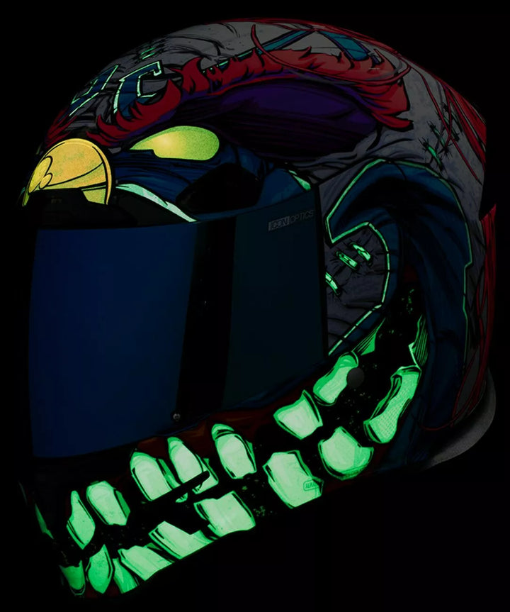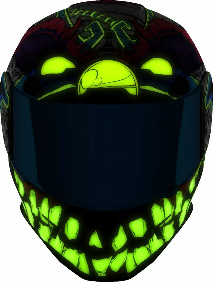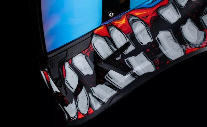 Icon Airfrene Pro ™ Krazy Klown 2 Jest hełmem dla tych, którzy chcą być widziani i słyszani - zarówno na torze, jak i poza nim. Z jego prowokująca i unikalna grafika i zaawansowane cechy techniczne To jest hełm, który nie pozostawiając kogoś nietkniętego.