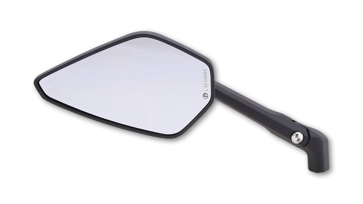 Regulowane ramię lustrzane w matowym czarnym anodowanym aluminium z regulowanym uchwytem i wypukłym szkłem. Dzięki użyciu drugiego złącza na uchwycie istnieją dodatkowe możliwości regulacji dla Twojego bezpieczeństwa. Obejmuje dodatkowy adapter M10 x 1,25 mm z nić po lewej stronie dla Yamaha, zatwierdzona przez E.