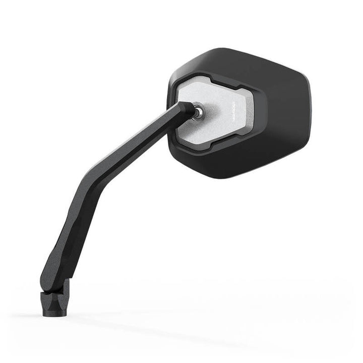 Rosnące i płaskie trapezoidy tworzą futurystyczny projekt serii Mirror Esagano-RS, która w ten sposób podnosi język projektowania nowoczesnych motocykli. Podstawowy korpus głowy lustrzanej, wykonany z wysokiej jakości plastiku, otacza charakterystyczną wkładkę, która jest obrabiana z aluminium. Symbolizuje to język projektowy rodziny produktów Esagano i tworzy unikalną wartość rozpoznawania wraz z rosnącymi i płaskimi zwężonymi geometrami. Koralik wysadził i matową czarną anodowaną powierzchnię aluminium kontrastuje z powierzchnią głowy lustrzanej, uzupełniając obraz. STEM, w aluminium, Alles! Jednocześnie, dzięki swojemu projektowi, oferuje wystarczającą przestrzeń między obszarem uchwytu a lustrzaną łodygą.