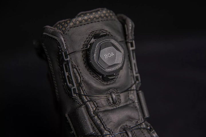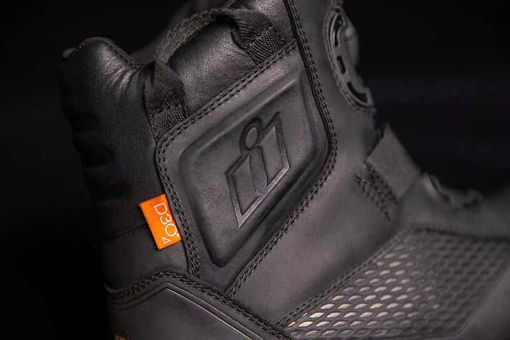 Premium skórzana górna część ma wodoodporne wykończenie, wodoodporne wkładki oddychające w oddychaniu Wodoodporne wkładki pomogą keet suchy, wysoce obalenia oleju/ oporne na poślizg gumowe podeszwy outsyme zapewniają szczytową wydajność motocykla, wkładki poliuretanowe z otwartymi komórek, BA. Wygodne dopasowanie, podwójne wkładki D3O® zapewniają pokrycie kostki, wzmocnione gumowe czapki, odblaskowe akcenty pięty i nuby interfejsu zmiany biegów