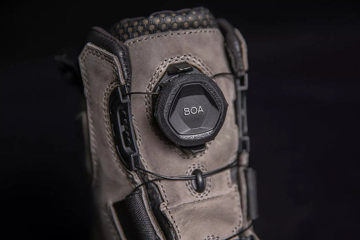 Premium skórzana górna część ma wodoodporne wykończenie, wodoodporne wkładki oddychające w oddychaniu Wodoodporne wkładki pomogą keet suchy, wysoce obalenia oleju/ oporne na poślizg gumowe podeszwy outsyme zapewniają szczytową wydajność motocykla, wkładki poliuretanowe z otwartymi komórek, BA. Wygodne dopasowanie, podwójne wkładki D3O® zapewniają pokrycie kostki, wzmocnione gumowe czapki, odblaskowe akcenty pięty i nuby interfejsu zmiany biegów