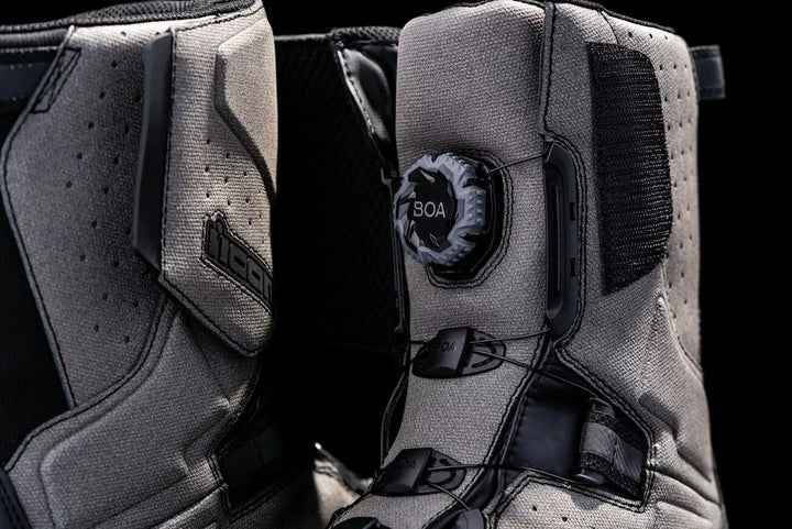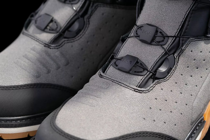 Upper składa się ze skóry Techtuff, wzmocniona płyta goleniowa zapewnia osłonę dla systemu sznurowania Boa dla zoptymalizowanego dopasowania, wodoodporna/oddychająca wkładka na zdarzenie utrzymuje sucho wnętrze, podczas gdy wkładki kostki D3O zapewnia zwiększoną konstrukcję pokrytą cieniem, jest połączona poduszka z pianki, a także oporna na olej i poślizg gumowa jednostka dolna gumowa