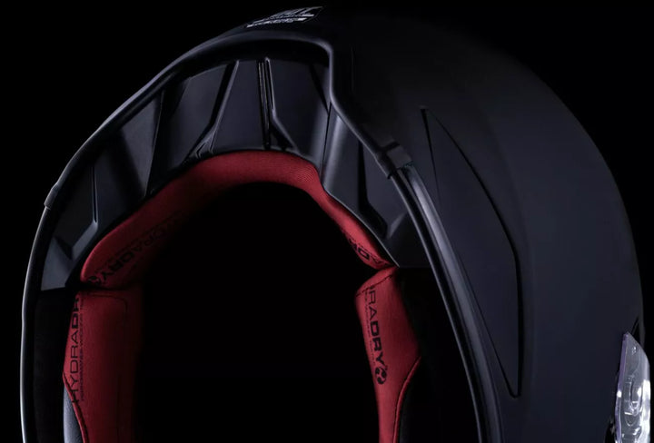 System ciągłego odpowietrzania, rzeźbiona bułka szyi, wewnętrzna geometria przepływu powietrza, zdejmowany uformowany deflektor oddechowy, ręcznie wykonana skorupa FRP dla optymalnej wytrzymałości z zminimalizowaną wagą, FOG-FOG Domena ™ Shield z Rapid-Realese ™ Sydrad Wyjmowany podbródka, ulepszony do HelMlink ™ Bluetooth® Communication System (sprzedany), obejmuje Clear Domain ™ Shield