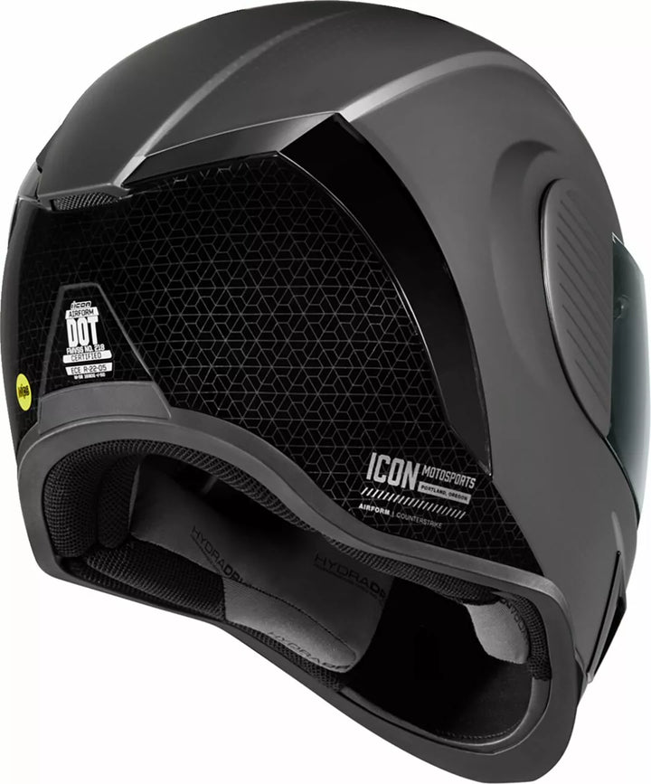 Uformowana wtryskowa powłoka poliwęglanowa do wytrzymałości, ProLock ™ dodatnia system blokowania tarczy, system ciągłego wentylowania, bezdroczna ikona optics ™ z systemem szybkiego reage ™, rzeźbiona bułka szyi, wewnętrzna geometria przepływu powietrza, wewnętrzna linijka z kroplą Hield musi być tylko używana, podczas gdy główna osłona twarzy jest jedynie linijka główna, linijka, a główna linerowa linijka, linerowa linijka Wewnętrzne kieszenie głośników działają z icon's R.A.U. Urządzenie Bluetooth, zawiera Clear & Dark Smoke Icon OPTICS ™, zawiera Dark Smoke Dropshield ™, zawiera Black Airform Chin Vent ™