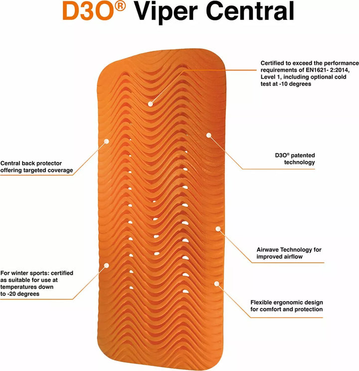 Niezwykle elastyczna, niskoprofilowa i lekka technologia fali powietrznej w celu ulepszonego przepływu powietrza dla sportów zimowych: certyfikowana jako odpowiednia do użytku w temperaturach do -20 °, 13 mm, tylnej ochrony EN 1621-1: 2014 Poziom 1.