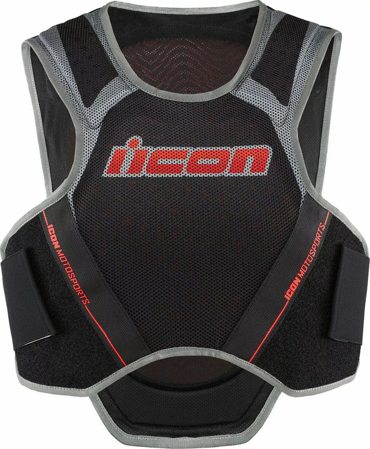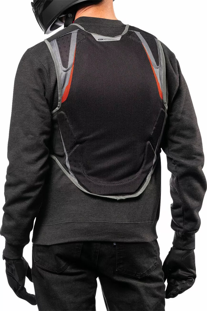 Niskoprofilowa konstrukcja do stosowania pod kurtką, podwozie z siatki żelaza ™, D3O® CP1 Protector uderzenia klatki piersiowej, ochraniacz uderzeń pleców D3O® Viper Back, elastyczne paski w talii, regulowane dopasowanie, sublimowana grafika, zaprojektowana i opracowana w USA 1621-2: poziom 2014 r., Poziom 1., Protection klatki piersiowej EN 1621-3: 2018 Poziom 1.