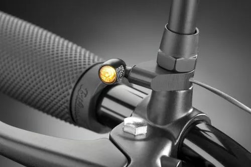Zmienny adapter montażowy M6., Ten adapter oferuje czyste i łatwe rozwiązanie dla różnych opcji montażu, a zatem zastępuje złożoną niestandardową konstrukcję. Składa się z dwóch części: arkusza zacisków i nakrętki trzonowej z M6 Wewnętrzną arkusz zacisku, który można przesunąć i obrócić na nakrętce trzpienia, jest kompatybilna z dowolną lampą M5 Gwintowaną (ATTO®, mikrami, rombą. Z tego montażu lampa można zainstalować śruby z grubem. Na przykład pod instrumentami. Wystarczy wymienić nakrętkę wału hamulca lub wątroby sprzęgła tym nakrętką trzonku. Arkusz zacisków można również zainstalować razem z lustrem kierownicy., Zastosowania: Micro 1000® i Rhombus.
