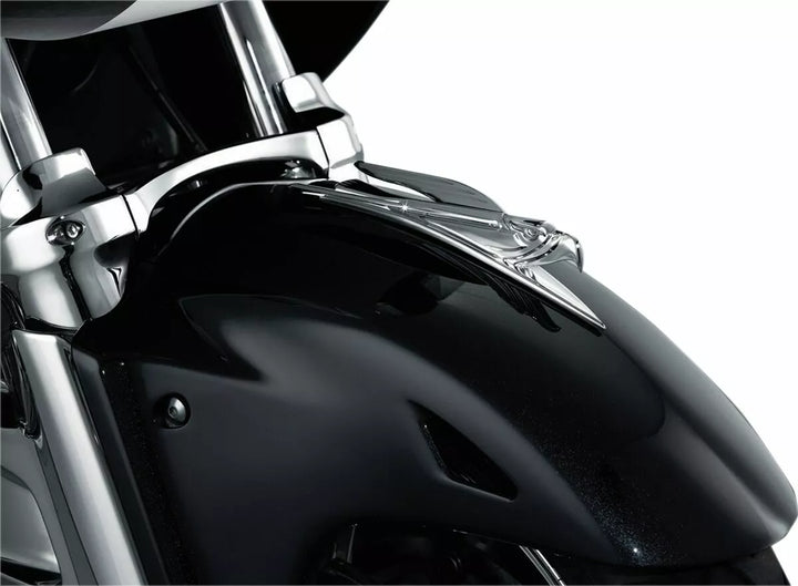Dodaje około 40. i 50. styl vintage, lekki konstrukcja ABS z chromowanym wykończeniem, prosta aplikacja Peel-andstick, mierzy 8-1/2 "L x 2-5/8" W, pasuje do wszystkich przednich błotników o promieniu około 15-1/4 "