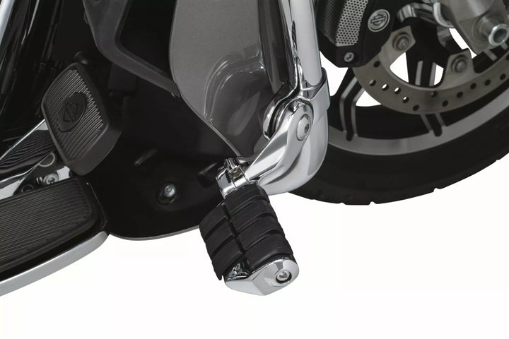 Teraz możesz łatwo zamontować kołki rejsowe na modelach komody/turystycznej z batonami autostrady i owiewki, specjalne interfejsy zacisku z przesuniętym ramieniem, aby dotrzeć do obniżki roweru, cały zespół można przesuwać w górę lub w dół osłony silnika lub regulowany wzdłuż pionowego lub poziomego łuku, unikalne zezwolenia na klimat pozwala na regulację kąta stóp stóp.