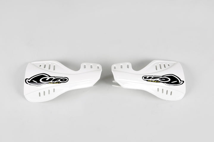 UFO tworzywa sztuczne są znane ze swojej jakości i odporności na użytkowanie w terenie. Są one zaprojektowane jak plastyki OEM i są łatwe do zamontowania. Są one używane przez dzisiejsze najlepsze drużyny MXGP i tworzą mistrzów świata. Handguards typu MX od wstrzykniętego plastikowego zestawu montażowego zawierającego na Włoszech Kolor: Biały
