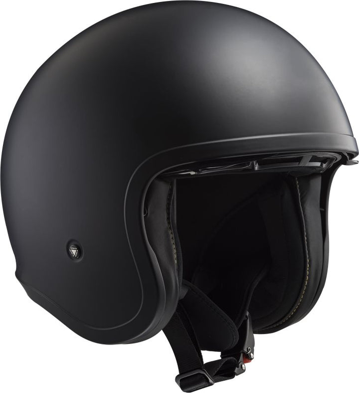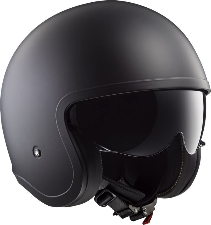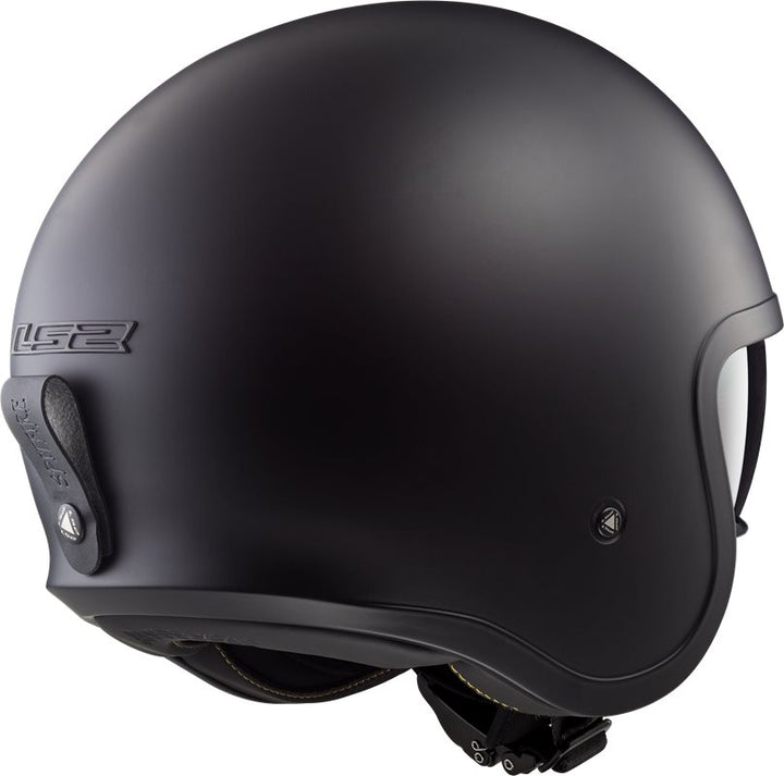 Sido vy av LS2 öppen mc-hjälm Spitfire II matt svart med aerodynamisk design och integrerat solvisir.