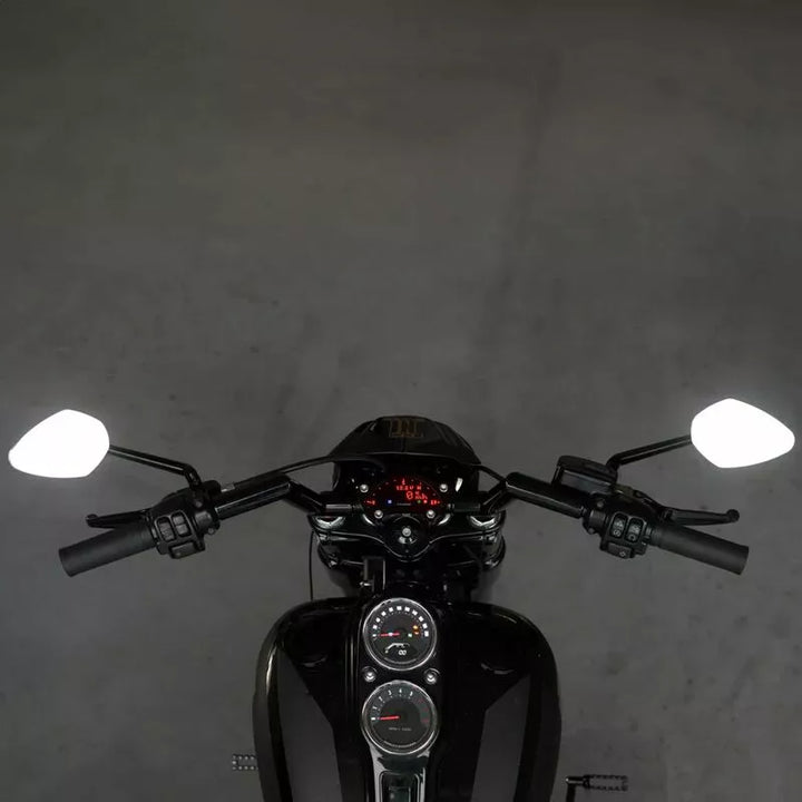 Lustro dodatkowe można łatwo zamontować do dowolnego gwintu lustrzanego M10 na paskach uchwytu. W zależności od preferencji lub rodzaju pojazdu do wyboru są dwie długości ramienia, które można idealnie przymocować do kierownicy. W przypadku niektórych modeli - takich jak motocykle Harley -davidson ™ - pasujący zestaw śrubowy MO.View jest również dostępny osobno (część: 06410255), nasza seria Glasless Mirror Mo.view jest wyjątkowy na świecie. Szczególną cechą naszych luster jest opatentowana powierzchnia lustra, która jest pracowana bezpośrednio z metalu ciała. Samo aluminium to powierzchnia lustra. Samo lustrzane ciało jest bardzo cienkie i lekkie, tworząc nieważki bez obręczy i ramy. Wypukodzona powierzchnia lustra jest wytwarzana przez cięcie muchy za pomocą narzędzi diamentowych na ultra-precyzyjnych maszynach w Berlinie. Następnie jest odporny na utlenianie, korozję i ścieranie przez złożoną powłokę w osoczu w próżni. Korpus lustrzany i ramię lustrzane są zmielone z stałego aluminium na maszynach CNC i anodowane do wysokiej jakości. Wszystkie śruby wykonane są ze stali nierdzewnej. , Precyzyjne połączenia kulowe wygodne i bardzo stabilne regulacja lustra. Łamanie szklane lub wypadnięcie nie jest po prostu niemożliwe. Lustro montażowe można zamontować na dowolnym gwincie lustrzanym M10 na kierownicy. Dostarczane są trzy śruby montażowe z różną gwintą. Lustro jest odpowiednie dla lewej i prawej strony, szerokość ciała lustra: 122 mm, lustro Wysokość ciała: 83 mm., Długość Ramię lustra: 150 mm., Grubość ciała lustra bez głowy kulki: 4,5 mm., Waga: 178 g. Ramię (z oznaczeniem ECE), 1 x śruba M10 x 1,5, 1 x śruba M10 x 1,25 Prawa ręka, 1 x śruba M10 x 1,25 Lewą gwint i instrukcje.