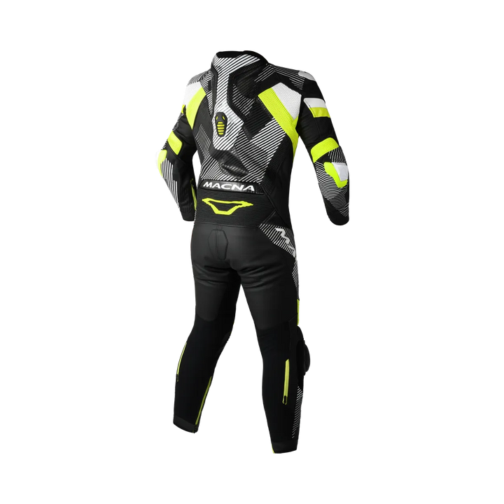 Macna Ignite jest jednym 1-częściowy skórzany stojak dla kierowców biegających ciężko i szybko w czasie upałów. Opiera się bezpośrednio na doświadczeniach MotoGP i jest prawie całkowicie wykonany Perforowana, wysokiej jakości skóra orzechowa, wzmocniony Dynamiczny rozciąganie i siatka 3D dostarczyć Maksymalna wentylacja i wolność ruchu Bez kciuka na bezpieczeństwo.