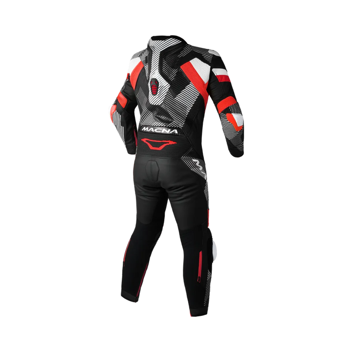 Macna Ignite jest jednym 1-częściowy skórzany stojak dla kierowców biegających ciężko i szybko w czasie upałów. Opiera się bezpośrednio na doświadczeniach MotoGP i jest prawie całkowicie wykonany Perforowana, wysokiej jakości skóra orzechowa, wzmocniony Dynamiczny rozciąganie i siatka 3D dostarczyć Maksymalna wentylacja i wolność ruchu Bez kciuka na bezpieczeństwo.