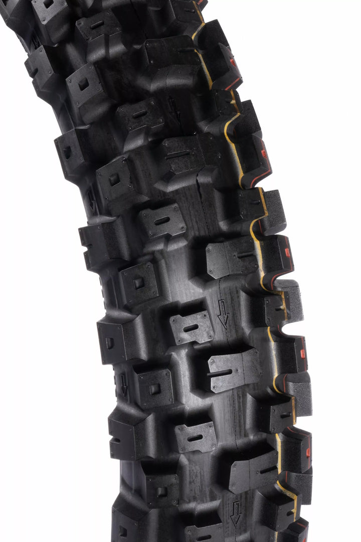 Najnowszym dodatkiem do zakresu opon Motoz MX jest opona konkurencyjna TerraPactor MXI (MX Intermediate). Zaprojektowany z lekką zwłoką i zaprojektowany do przodu w terenie pośredniego do twardego (mieszanka luźnej i upakowanej gleby, twardej gleby i głębokich ciężkich kolein). Benchmark dla wydajności opon MX w wielu rodzajach terenu!, Opona MXI wyróżnia się swoim charakterystycznym wzorem, specjalnie wykonanym w celu zapewnienia najwyższej wydajności. Dzięki strategicznemu włączeniu punktów elastycznych w tuszach i pokrętłach opona MXI zapewnia przewidywalność i ulepszoną przyczepność narożną, dostosowując się i zginając zgodnie z terenem, aby zapewnić większą kontrolę i pewność siebie podczas jazdy. Pakowana gleba i głębokie obfite koleiny), pełny zakres od mini-krzyżowych do dużych motocykli (15 różnych rozmiarów), dwa przednie rozmiary opon, 80/15-21 dla najbardziej agresywnych wydajności na toru oraz zupełnie nowe 90/100-21 z wyższym profilem dla zwiększonych warunków, unikalne strefy Flex wbudowane w nowniki i łupy dla ulepszonych wyczuć i zgodności z przepisami, elastycznymi sensami i ulepszaniem kukurydzy i nowości, wszystkiego, wszystkiego, wszystkie starsze strefy. dla lepszej zgodności