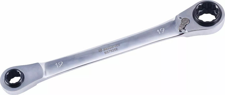 Precision 72-zębowe przekładnie zapadkowe wymagają jedynie łuku wahadłowego 5 ° do przenoszenia elementów mocujących w ograniczonych przestrzeniach, specjalny projekt pierścienia zapadkowego umożliwia cztery różne rozmiary na jednym klucze, rozmiary sześciokątne pokrywają najpopularniejsze miary metryczne na motocyklach