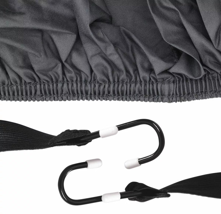 Wykonane z niestandardowego barwionego wodoodpornego poliestru poliuretanu, zapewniające doskonałą ochronę przed pogodą, brudem i zanieczyszczeniem., Trwałe złożone szwy, zapewniają najlepszą trwałość i odporność na pogodę. Z 4 sprężystymi paskami z haczykami, które pomogą zabezpieczyć przed wydmuchiwaniem wiatru., Wygodna kompaktowa torebka do przechowywania sznurka., Logo o wysokiej widoczności, aby pomóc w pokrytej jeździe na ciemnych parkingach., Lewą i prawą Attenna Punkty dostępu do haczyka i pętli z hakiem i pętlą z uszczelką haczykową z haczykami z haczykami z haczykami z haczykami z haczykami z haczykami z haczykami z haczykami z haczykami z haczykami z haczykami z haczykami z haczykami