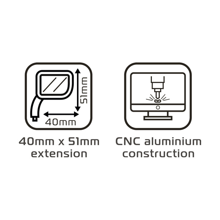 Przedłużacze lusterek Oxford są idealne do zwiększania widoczności tylnej podczas jazdy, podnosząc lustro o 51 mm dalej i 40 mm. Łatwe do dopasowania, po prostu odkręć lustra, wkręcić przedłużacze na miejscu, a następnie wkręcić lustra w przedłużacze.