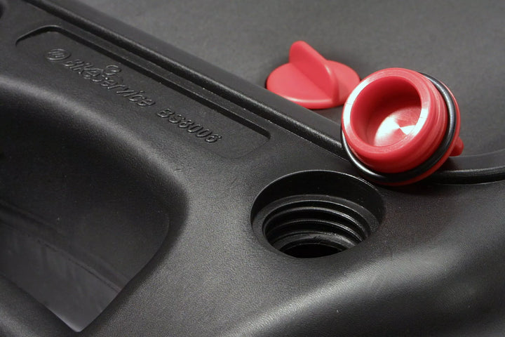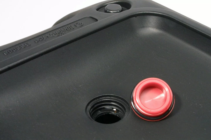 Połączenie wielofunkcyjnej miski drenażowej i pojemnika transportowego do zmiany oleju i czyszczenia części. , Odpowiednie do oleju, dodatków, płynu chłodzącego i innych płynów. , Zakręt z gumową uszczelką zapewnia bezpieczny transport i bez szczelności., Wykonane z trwałego i odpornego na uderzenie plastiku z trzema uchwytami.
