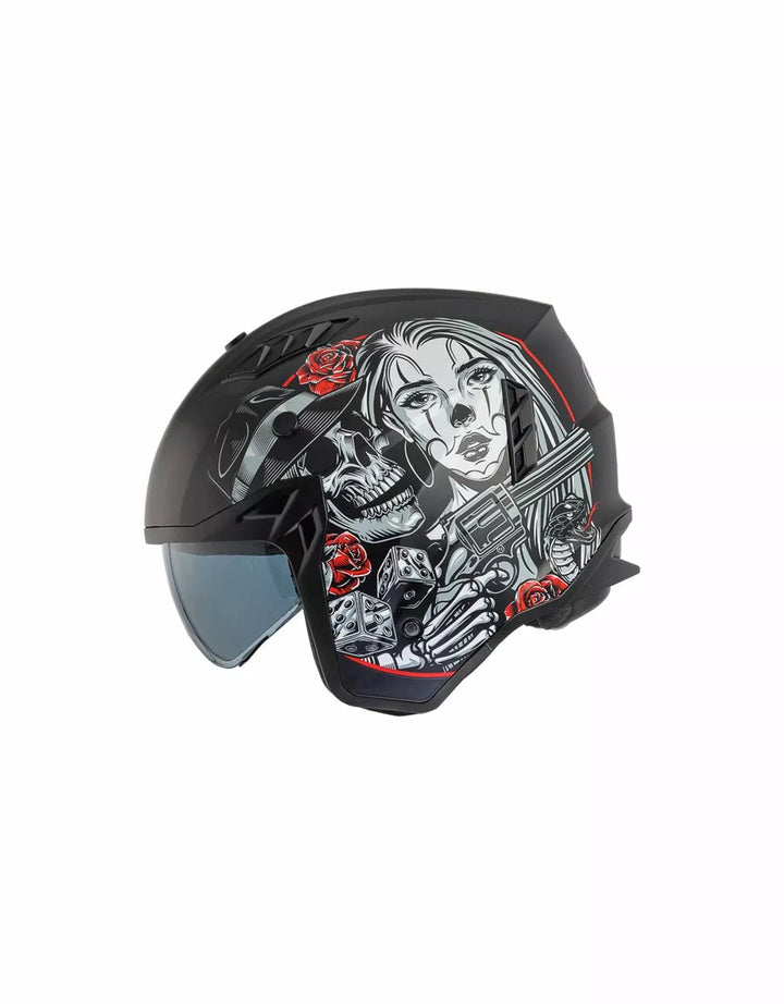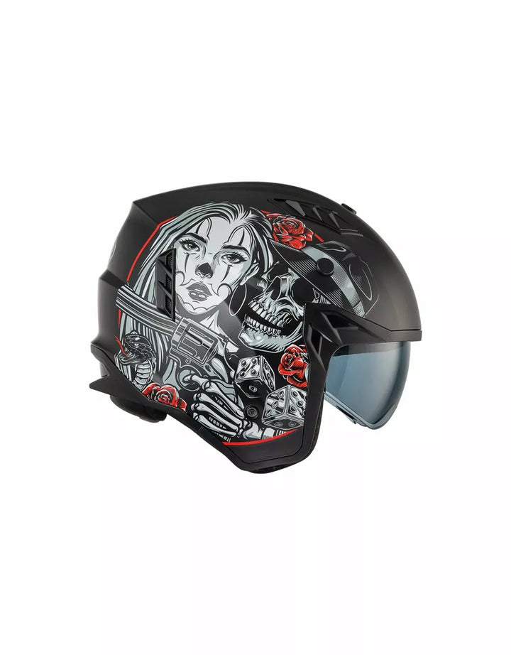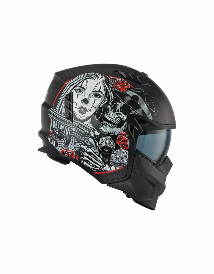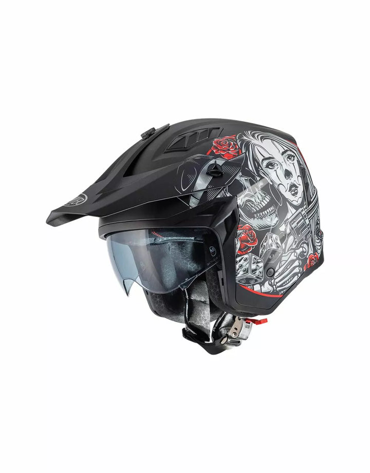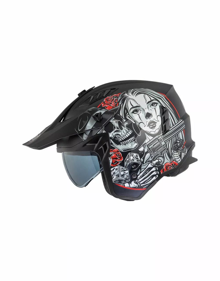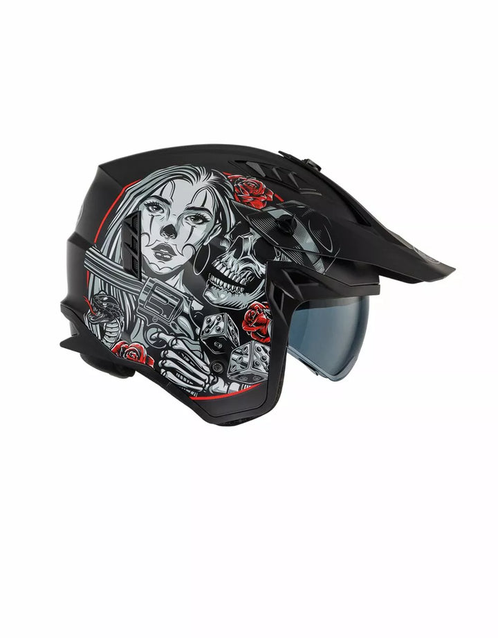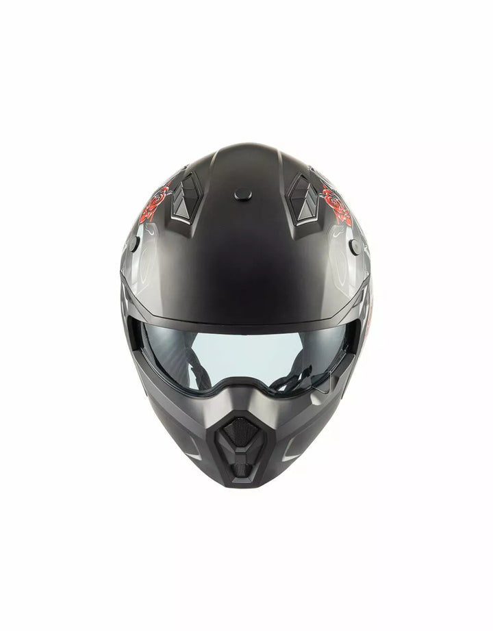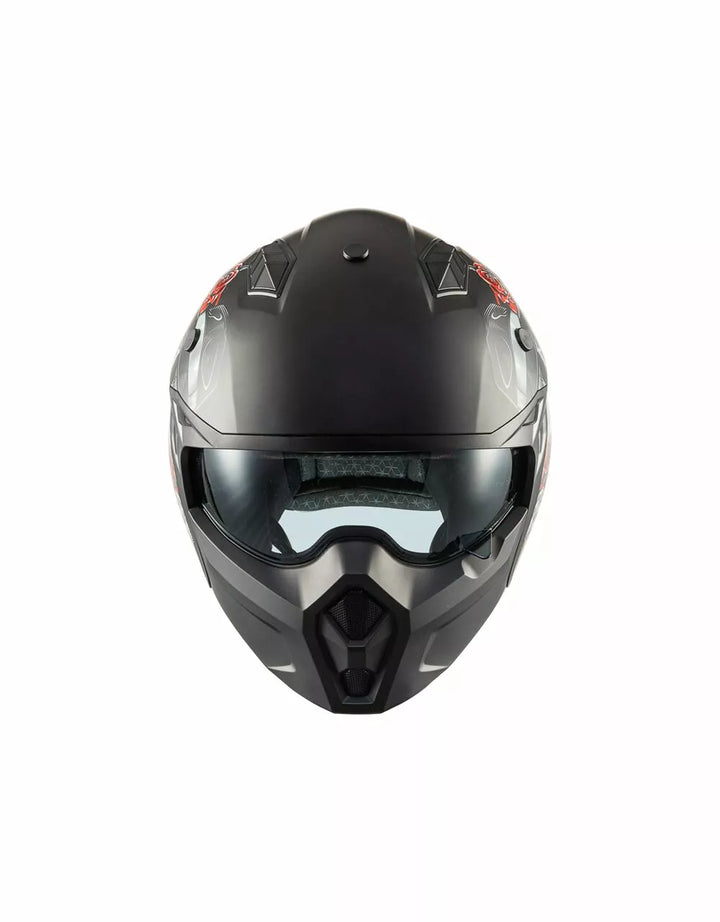 Zewnętrzna konstrukcja termoplastyczna jest lekka, a wewnętrzna konstrukcja jest wykonana z materiałów EPS o różnej gęstości w zależności od obszaru, aby zapewnić reakcję uderzenia., Wypuszczalny odcinek podbródka, aby zmienić ten hełm na pełny twarz w kask odrzutowy. , Vieor jest wtryskiem przezroczystym poliwęglanem i ma leczenie przeciwzuczulone. , Wewnętrzne dzieło działają jak okulary przeciwsłoneczne i mogą być podniesione wewnątrz skorupy. System wentylacyjny ma dwa wloty powietrza w górnej części skorupy i dwa ekstraktory z tyłu., Pozycjonowanie wnętrza zostało zaprojektowane tak, aby pozostawić widok szeroki i poczucie ruchu. , Wnętrza są zdejmowane, można prać i hipoalergiczne przez odkażone leczenie.