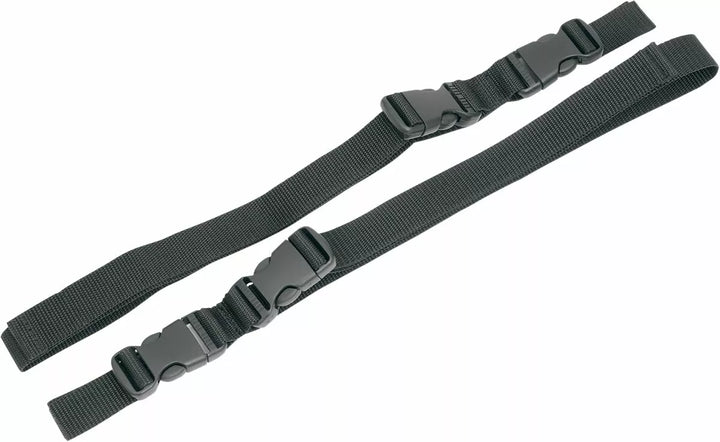 Dołączono dwa nylonowe paski z regulacji długości; Każdy mierzy 38 "L Gdy klamry są niepowiązane, każdy pasek obejmuje jedną klamkę mężczyzn i jedną kobietę, a także drugą męską klamrę zszytą do paska, który podłącza do większości bagażu saddlemen, dwie osobne zakuczkowce zakuczowe includowane