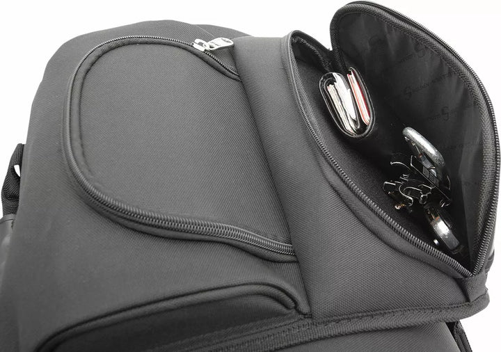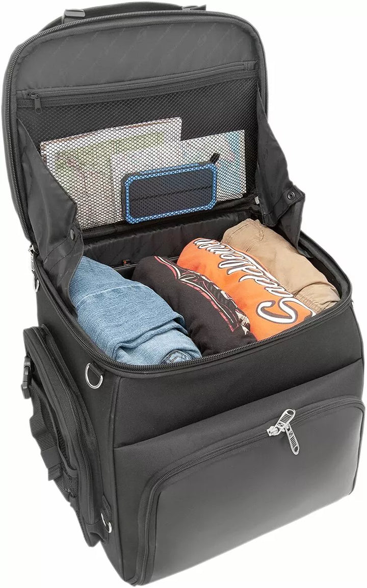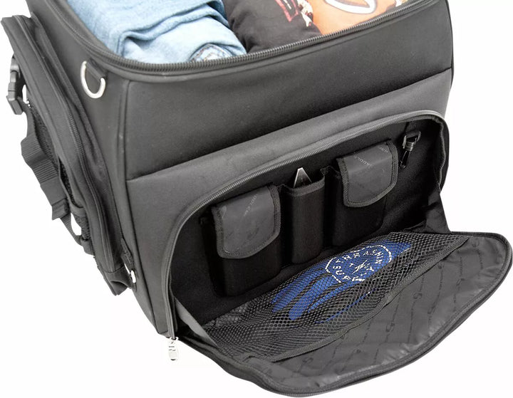 Dwa systemy montażowe obejmowały - wiązka wiązki siedziska lub regulowany system paska z prętem Sissy łatwo przymocowuje torbę do siedzenia motocykla, bagażnika lub pręta maminsynowego, wytrzymała mieszanka materiałów i materiałów z podbiciem liści świetnie wyglądają na dowolnym rodzaju motocyklu; Struktura wewnętrzna utrzymuje kształt worku, nawet gdy jest pusta, pada oparte można regulować w celu uzyskania dodatkowego komfortu dla pasażera lub kierowcy, zawarte odpinane paski plecakowe dla łatwych żaluzji bez rowerów, przestronne główne przedziały z góry, to duża komora, która może zostać rozszerzona, co może być rozszerzone dla dodania, pięć głównych mieszkań, pięć stęgi, pięć stwarstwy stabilnej, pięć stwarstunków, pięć stabilnych, pięć stwarstunków, pięć stabilnych. Kieszenie, dwa Outs Friefer Mesh Pockets, Deszczowa okładka po co Securit Cover Po dlaczego widzieć okładkę po co widzieć okładkę po co widzieć okładkę po co widzieć okładkę po co patrzeć na okładkę, dlaczego koncert deszczowy był okładką deszczu. Klapę zewnętrzną można regulować, aby nosić kurtkę, mini-padlock, z dodatkowymi klawiszami, pomóc w zabezpieczeniu rzeczy w torbie, zbudowanej za pomocą UV, wodę i odporne na pogodę 1200 DENIER SADDLUFF ™; i skórzane panele winylowe