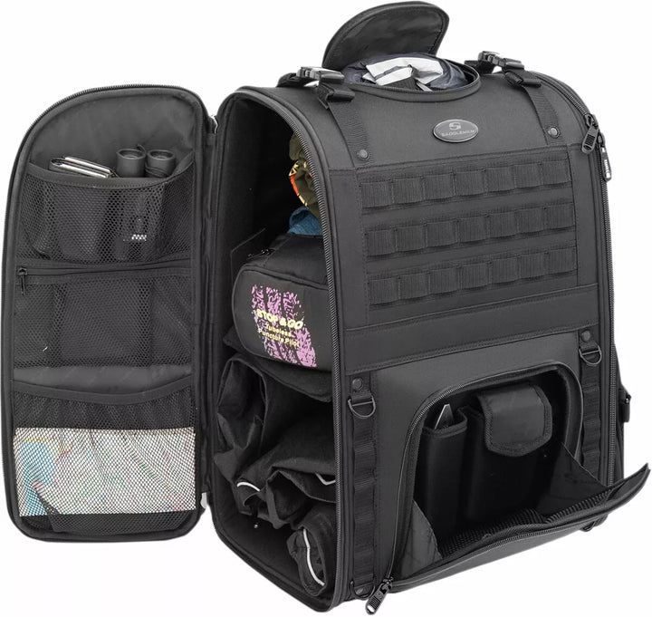 Dwa otwór z boku zapinany na zamek zapewnia łatwość ładowania, ocena UV, odporna na pogodę podwozie 1200D, rama o strukturze plastra miodu utrzymuje kształt torby, nawet gdy pusta, wewnętrzna półka pomaga oddzielić ładunek i dostosowuje się w górę i w dół, lub może być zdejmowane w całości lub można usunąć szafy z pełnym montażem, a bez szafy Plus zorganizowane elementy Strap zorganizowane, Plus Cit. W przypadku różnych opcji montażu cały koniec paska obejmuje zainstalowane ONZ, wiele wytrzymałych d-ring dla dodatkowych opcji montażowych lub podłączania, zintegrowane punkty mocowania Molle Modular do dostosowywania, obejmuje zdejmowane paski plecakowe i uchwyt przenoszenia do łatwości transportu