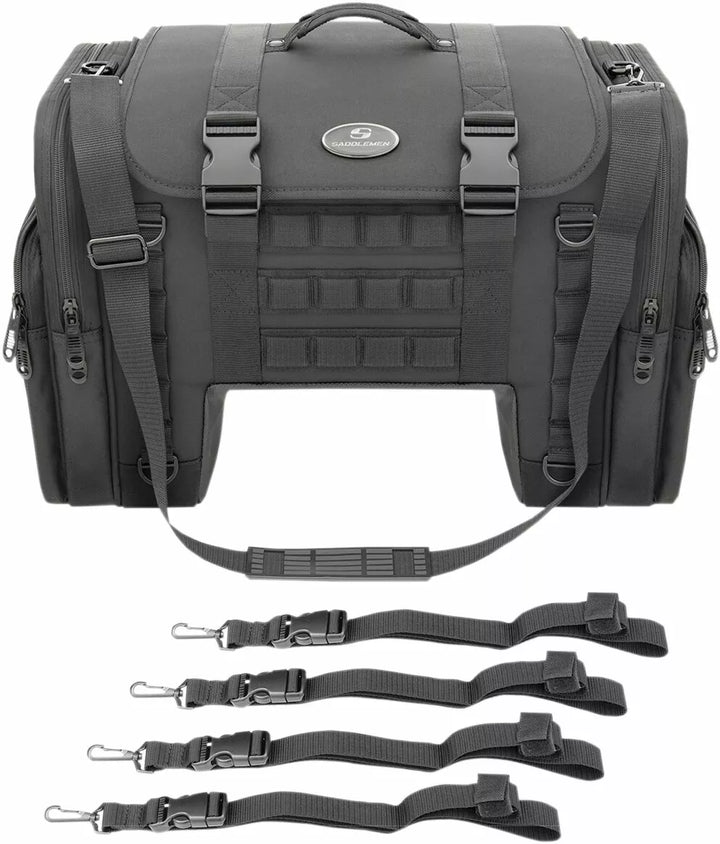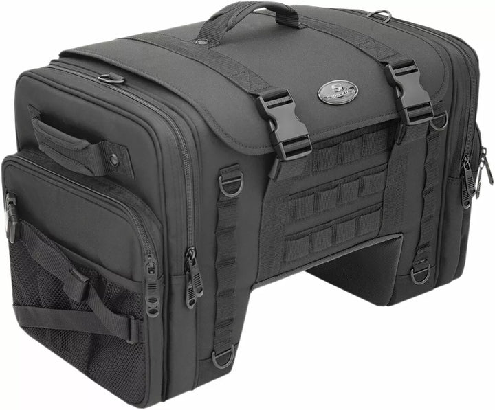 Mocne, nylonowe zęby zamek błyskawicznych z czarnymi suwakami wyposażonymi w duże pociągnięcia do łatwego użycia ręką rękawiczką, ponadwymiarowe pierścienie montażowe wokół torby Ogranicz unikalne wyzwania montażowe, organizator technologii jest idealny między jeździecką a pakietem wycieczkowym, zbudowane z opcji Zastosowania Molle, zbudowanego z UV-, wodoodpornego i pogodowego 13.5. H x 11 cali d, ma kształt, nawet gdy jest pusty, wiele zewnętrznych kieszeni