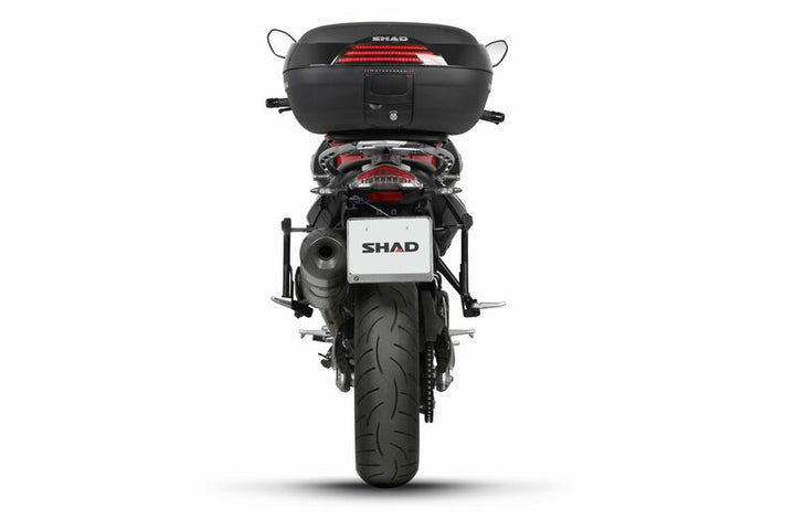 Dopasowanie główne Shad Top umożliwia montaż górnej obudowy na motocyklu. Jest to dopasowany specjalnie zaprojektowany model Motorcycle, biorąc pod uwagę jego cechy. Rezultatem jest wysokiej jakości produkt, wygodny, bezpieczny i łatwy w montażu i demontażu. Aby zamontować górną skrzynkę na rowerze, konieczne jest dodanie tego zestawu do płyty zawartej w obudowie Shad.