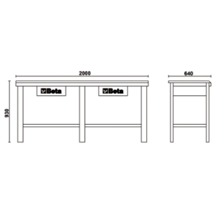 Top roboczy wykonany z pomalowanego blachy z zewnętrzną ramą Edgesteel z 6 podtrzymującą pojemność obciążenia: 1200 kgmatches panelu 51100039; Nie można naprawić szuflad WorktoptoWo z Lockcanem na podłogę 2000x640x930 mm Waga 82 kg