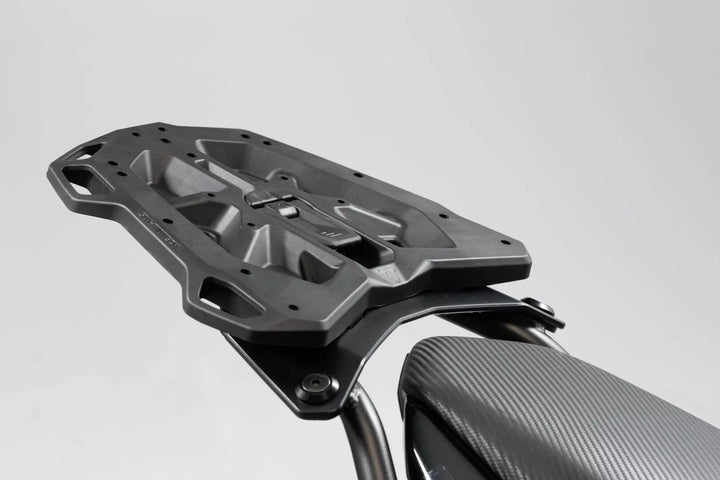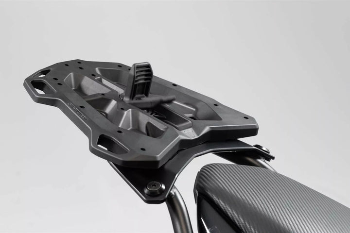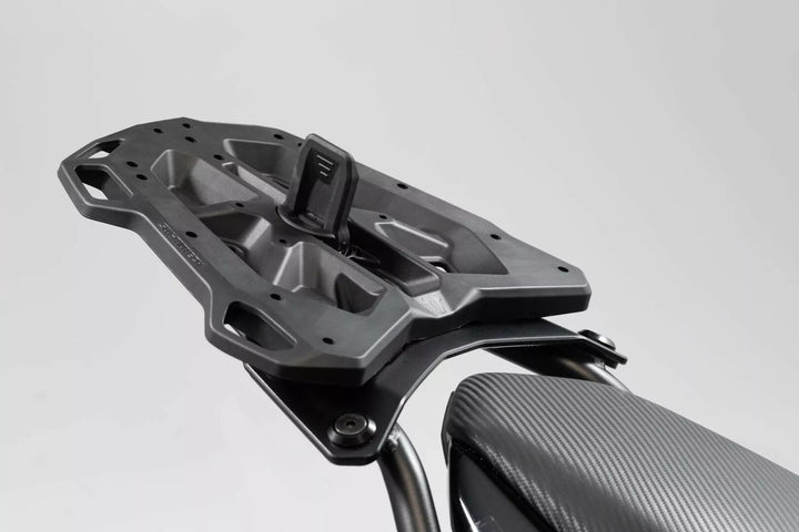 Z jednym prostym ruchem skrętu i zacisku płyta adaptera może być podłączona do dowolnego ulicy. Brak wymaganych narzędzi!, Płyta adaptera jest po prostu wsuwana na stojak i bezpiecznie zablokowany obracającą się zatrzasku krzywki. Po przejściu płytka adaptera można usunąć w kilka sekund, a po prostu stojak pozostaje na motocyklu. Uderzanie o oczy.
