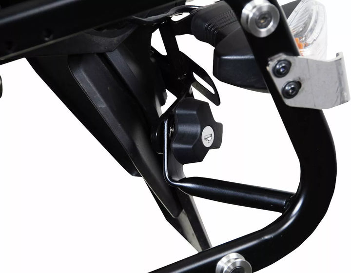 Ochrona przed złodziejami: Pro Side Carrier może zostać zdemontowany w błyskawice, dzięki szybkiemu zwolnieniu, aby chronić przed kradzieżą, zalecamy zastąpienie szybkiego zamocowania szybkiego zatkcia książką Ochrona przeciw kradzieży przeciw heftowi, dowolne dwa szybkie elementy zwolnienia można wymienić, ustawione na prawą i lewą przekładnicę pro, składającą się z 2 pasujących zamków.